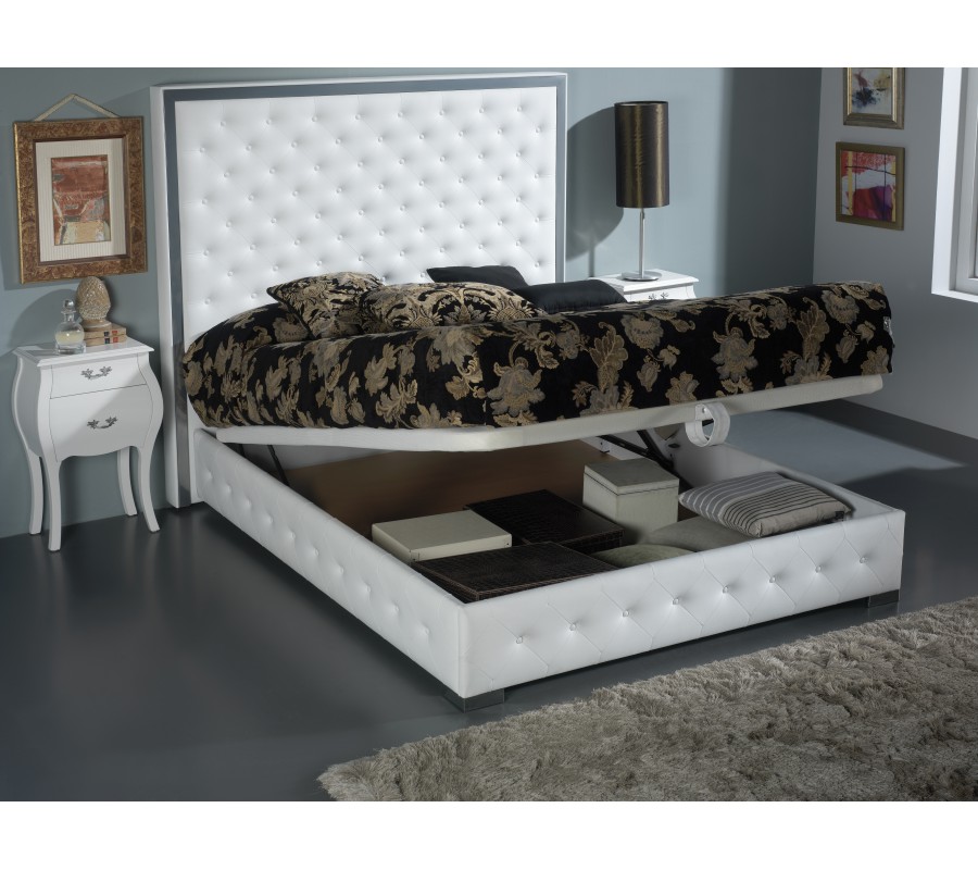 Luxusná posteľ VALERIA s úložným priestorom vytvorí vo Vašej spálni jedinečnú atmosféru. Má jednoduchý vzhľad, štýlovo čistý, zdobený iba čalúnením, ktoré je opatrené cvokmi. Posteľ je čalúnená eko kožou. Zdvíhanie postele zaisťujú plynovej hydraulické zdviháky. Táto posteľ je dostupná tiež vo farbách: čierna, hnedá, strieborná, ivory a moka. Prosím, špecifikujte vo svojej objednávke Vami zvolenú farbu. Súčasťou postele je drevený rošt bez matraca. Výška čela 153cm.