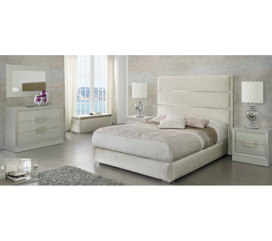 Luxusná posteľ CLAUDIA so zamatovým čalúnením sa stane stredobodom pozornosti každého interiéru. Príjemná krémovo-biela farba čalúnenia je doplnená prešívaním na vysokom čele, vytvárajúc tak elegantné vodorovné línie, dodávajúc tak čalúneniu hĺbku a majestátnosť. Celkový dizajn postele je doplnený nízkymi kovovými nožičkami v striebornej farbe. Posteľ CLAUDIA je k dispozícii vo viacerých rozmeroch a farebných prevedeniach, ako je krémová biela, svetlobéžová, nadčasová tmavá námornícka modrá, elektrizujúca strieborná, gaštanová hnedá alebo príjemná moka. Vďaka neutrálnosti farebných prevedení zamatového čalúnenia je posteľ CLAUDIA ľahko kombinovateľná so širokou farebnou škálou, neváhajte miestnosť oživiť výraznejšími doplnkami v podobe obrazov, kobercov, sošiek či svietidiel. Prosím, špecifikujte vo svojej objednávke Vami zvolenú farbu a rozmer. Súčasťou postele je drevený rošt bez matraca.