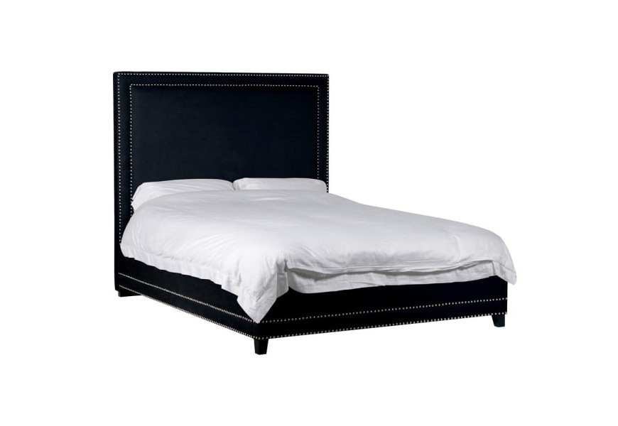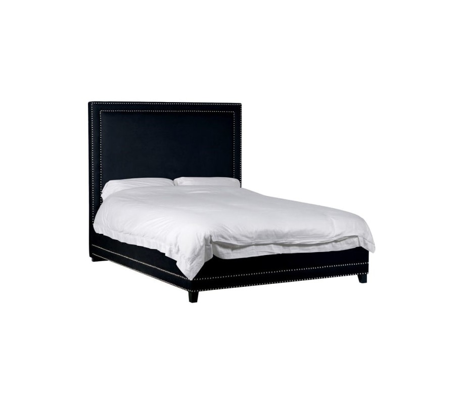 Art-deco čalúnená manželská posteľ Emanetta v luxusnej čiernej farbe s vysokým čelom s kovovými cvokmi 165cm