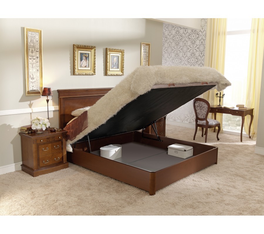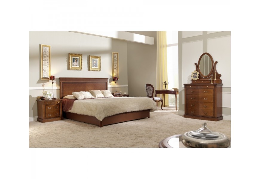 Luxusná rustikálna posteľ z kolekcie klasického nábytku CASTILLA predstavuje naozaj trvácny a nadčasový kus nábytku, ktorý bude slúžiť dlhé roky. Konštrukcia postele je vyrobená z kvalitného dreva chráneného dyhou. K dispozícii na objednanie sú aj varianty postele na zdobených vyrezávaných nožičkách bez úložného priestoru a posteľ aj s predným čelom postele (pri nohách). Vkusné, rustikálne ozdobné prvky dosiahnuté vkusným vyskladaním časti dreva s rôznou orientáciou letokruhov sú vo farebnej variante Čerešňa a Orech ručne zhotovené, čo robí z tejto postele naozaj jedinečný a honosný rustikálny nábytok. Praktickým doplnkom postele je uzavretá spodná časť, vďaka ktorej vzniká priestranný úložný priestor. Posteľ CASTILLA je dostupná v troch šírkových rozmeroch a vo farebných prevedeniach. V prípade varianty postele s úložným priestorom sa čelo postele uchytí o stenu. Produkt na fotografií je vo farebnom prevedení orech.