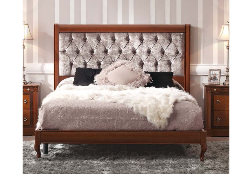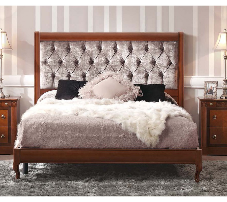 Luxusná posteľ s čalúneným čelom Rustica si Vás získa svojim elegantným, rustikálnym vzhľadom. Konštrukcia postele je vyrobená z kvalitného bukového masívu a doplnená ručne vyrezávanými ozdobnými prvkami. Čelo postele je doplnené lesklým zamatovým čalúnením, pri ktorom si môžete vybrať z ôsmich variantov. Posteľ je možné vyhotoviť v štyroch rozmeroch a rovnako ako všetok nábytok tejto kolekcie v štyroch farebných prevedeniach podľa vzorkovníka dreva. V cene postele Rustica je zahrnutý aj rošt.