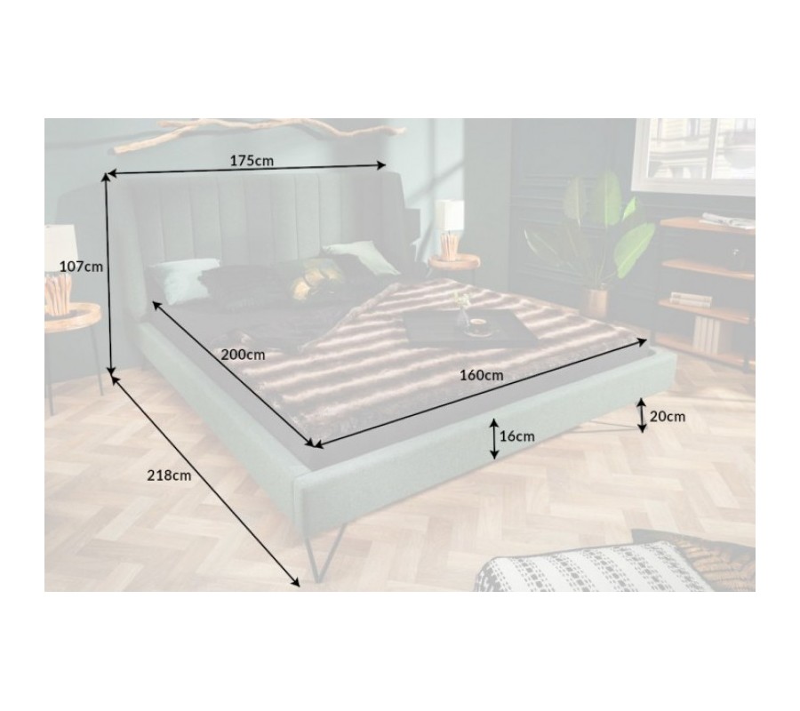Dizajnová manželská posteľ Taxil Mode je unikátnym kúskom vhodným do každej modernej spálne. Poťah v sivozelenej farbe do vašich priestorov vnesie štýlový nádych a dá sa kombinovať so širokou škálou odtieňov. Čierne kovové nožičky dopĺňajú celkový dizajn a dotvárajú jedinečný retro efekt. Vyššie čelo sa postará o vaše pohodlie aj pri sedení pri vašich ranných či večerných chvíľach v pohodlí vašej spálne. Posteľ Taxil Mode sa dá výborne doladiť výraznejšími textíliami v tmavších odtieňoch a krásne vynikne v kombinácii s masívnym nábytkom alebo doplnkami v naturálnych farbách. Posteľ Taxil Mode vás poteší možnosťou umiestnenia do priestoru vďaka čalúnenej zadnej strane.