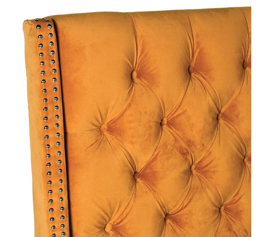 Luxusná manželská posteľ Senapa s vysokým čelom v horčicovej žltej farbe s Chesterfield prešívaním 210cm