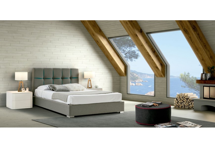 Dizajnová manželská posteľ Veronica so sivým čalúnením s geometrickým vzorom 140-180cm