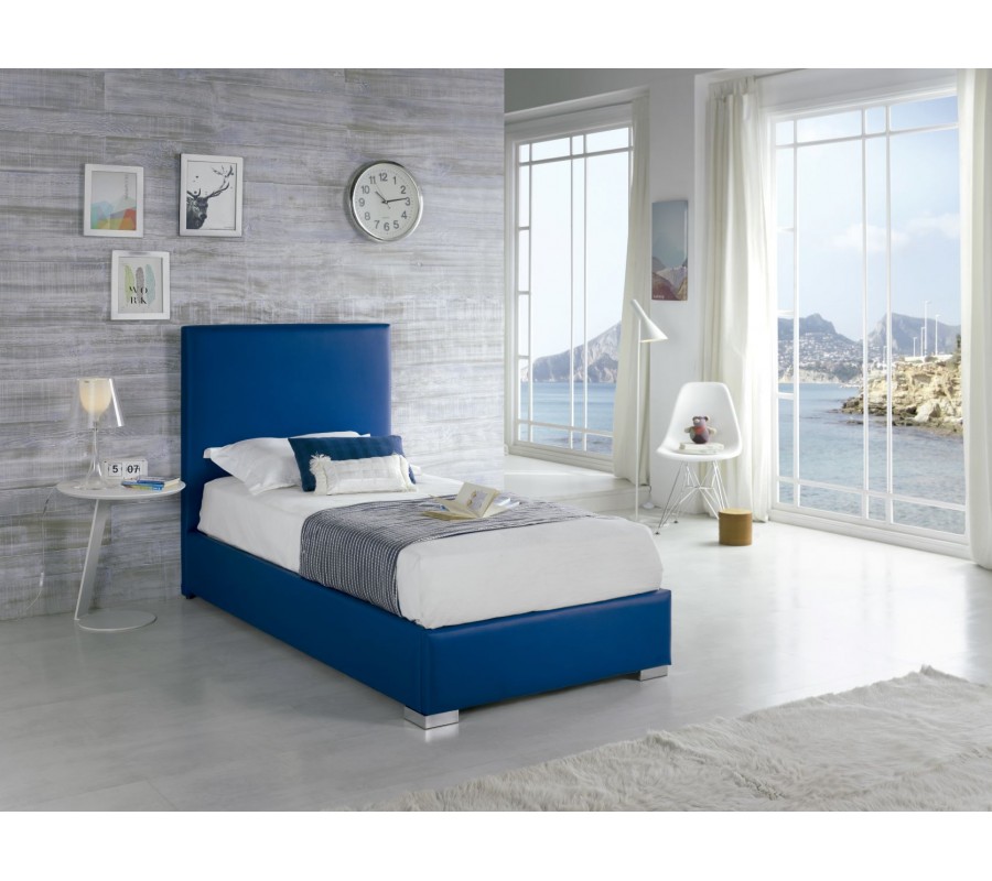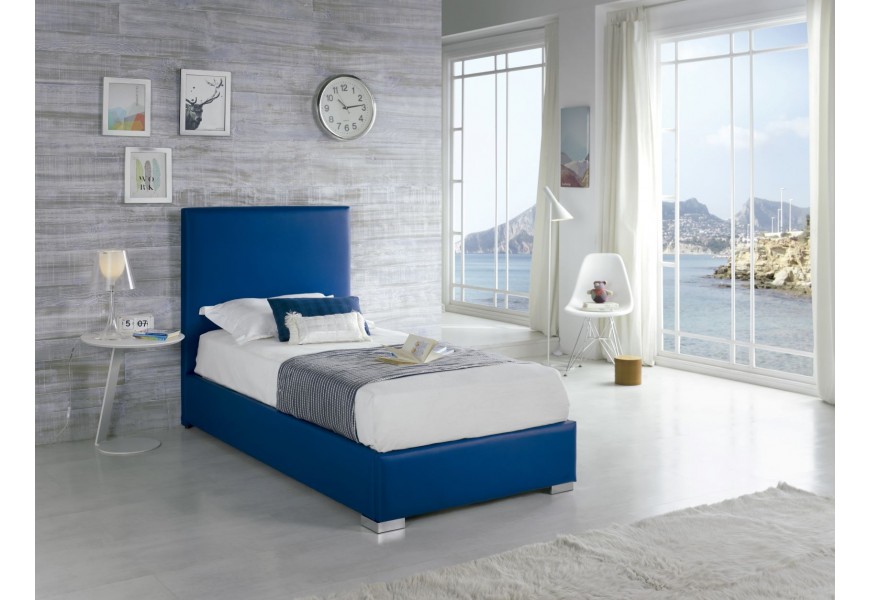 Moderná kožená posteľ Piccolo s modrým poťahom 90-105cm