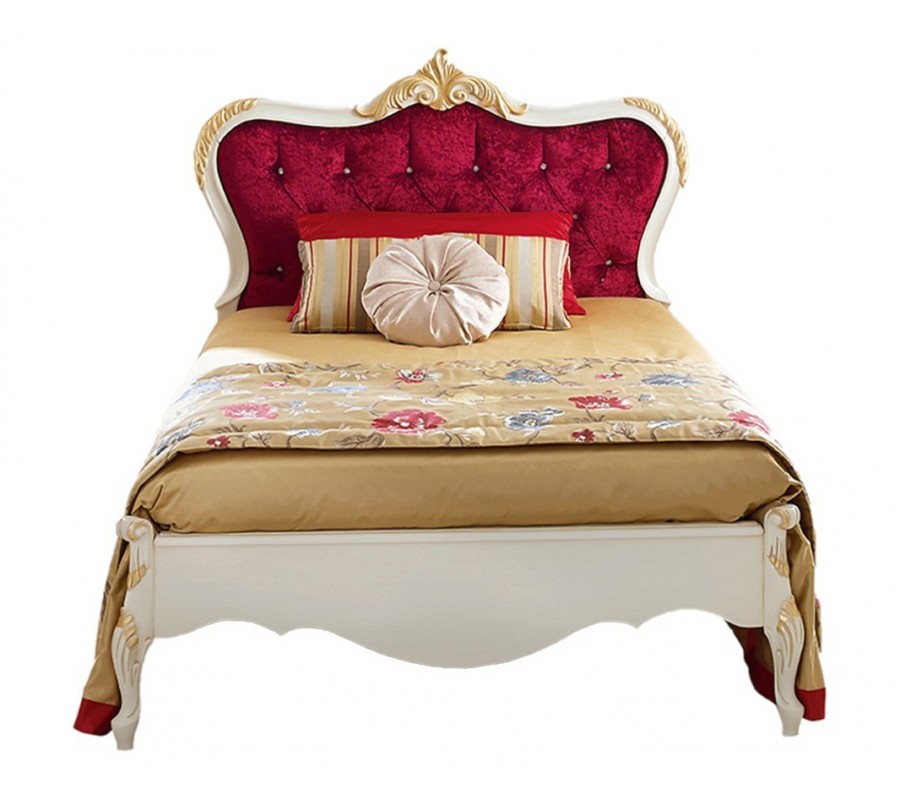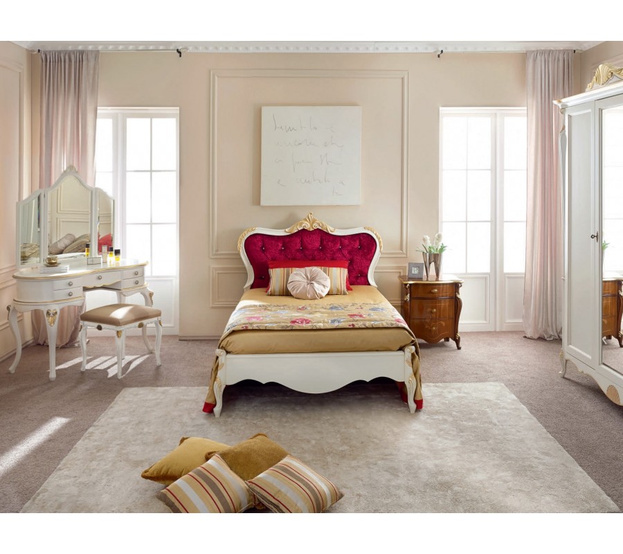 Luxusná posteľ z kolekcie talianskeho nábytku Pasiones je špecifická svojím znamenitým barokovým vzhľadom, ktorý je dosiahnutý kombináciou masívneho dreva a čalúneného čela s chesterfield prešívaním. Poťah červenej farby vytvára štýlovú kombináciu s krémovým povrchovým prevedením dreva a zároveň sa postará o vaše pohodlie. Farbu dreva je možné vybrať z niekoľkých variantov, ktoré sú k dispozícii v priloženom vzorkovníku. Jedinečný starožitný vzhľad je dosiahnutý najmä vyrezávanými nožičkami, elegantnými zaoblenými líniami a bohatým ornamentálnym zdobením zlatej farby. Posteľ Pasiones krásne vynikne v klasicky, barokovo či rustikálne ladených spálňach a dá sa vhodne kombinovať s masívnym nábytkom.