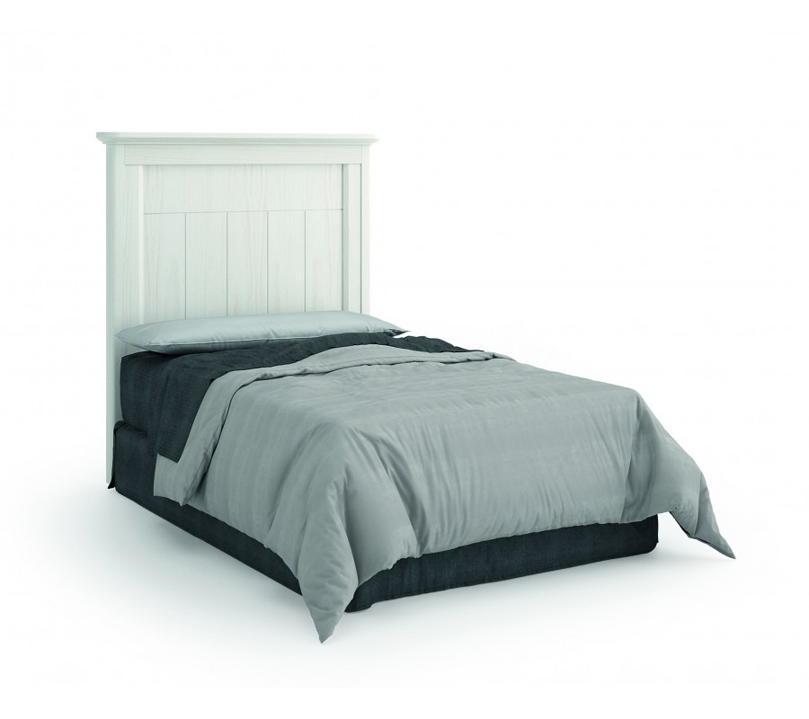 Posteli dominuje vyššie čelo, ktoré má lineárny obdĺžnikový tvar. Vo vrchnej časti ho dopĺňa rozšírená vyrezávaná rímsa, ktorá mu dodáva klasický výraz. Na bočných stranách sú vyzdvihnuté lišty, čo vytvára kazetový efekt. Stredová časť je rozdelená na širšie vertikálne latky, prinášajúce nádych vidieckej estetiky.