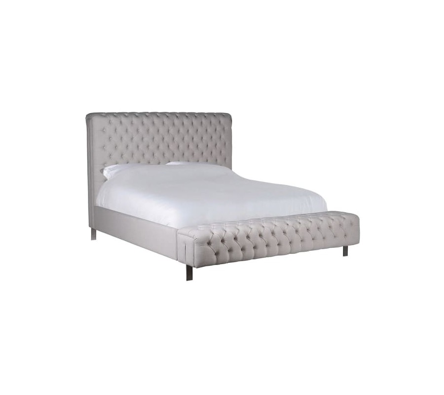 Luxusná manželská posteľ Oberstell vďaka poťahu z prírodných ľanových vlákien získava príjemnú ľahkosť a zároveň vysokú odolnosť. Ľanový poťah v svetlosivej farbe je doplnený o prešívanie v chesterfield štýle, vďaka čomu posteľ získava jemný romantický vintage nádych. Kontrastným prvkom sú jednoduché čierne nožičky tvoriace elegantný nadčasový prvok. Čalúnené čelo postele sa postará o vaše dokonalé pohodlie pri chvíľach večerného oddychu. Vďaka svojmu dizajnu s romantickým nádychom sa dokonale hodí do spální zariadených masívnym nábytkom vo vintage štýle. Manželskú posteľ Oberstell možno pre spríjemnenie a zútulnenie doplniť pletenými vankúšmi či múkkým kobercom s dlhým vlasom.