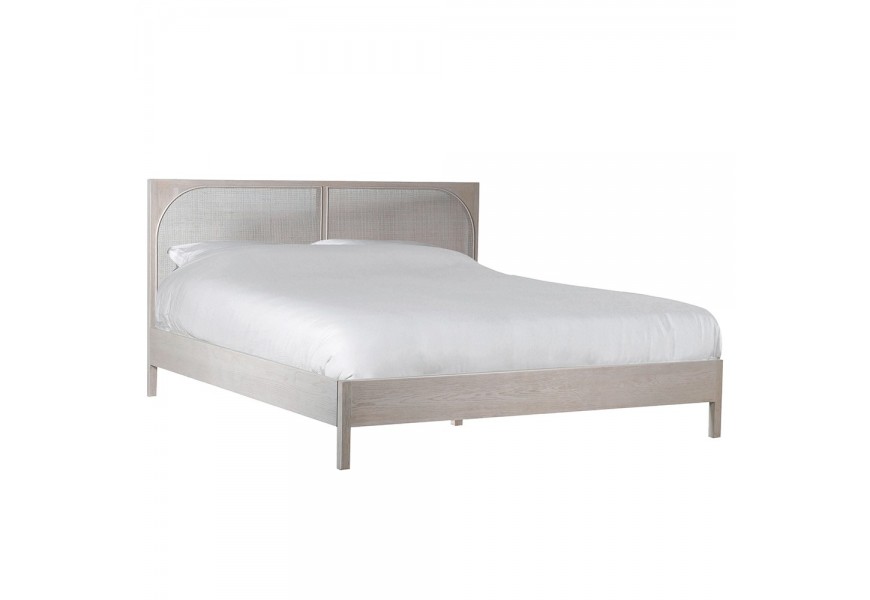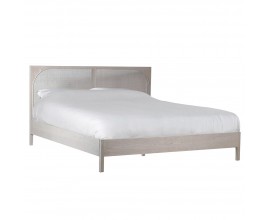 Vidiecka bledohnedá manželská posteľ Tyrrel z masívu s ratanovým čelom 198cm