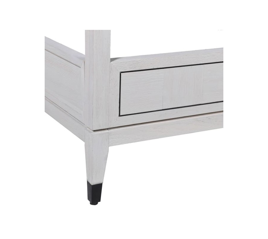 Luxusná manželská posteľ Quadria Blanca predstavuje nadčasový kúsok, ktorý okrem pútavého dizajnu prináša komfortné a pohodlné riešenie vhodné do každej modernej spálne. Posteľ je ideálna pre všetkých, ktorí si radi doprajú ničím nerušený oddych. Oázu pokoja si vo svojej spálni môžete vytvoriť vďaka rámu na upevnenie baldachýnu, ktorý vaše chvíle oddychu pozdvihne na vyššiu úroveň! Masívny rám sa nesie v bielej off white farbe, ktorú dopĺňa zaujímavú štvorcový vzor dosiahnutý precíznym ukladaním jednotlivých kúskov dreva s rôznymi smermi letokruhov vedľa seba. Vzniká tak moderná a nadčasová kombinácia, ktorá je zároveň vynikajúco kombinovateľná! Bielu masívnu konštrukciu dopĺňa štýlové čierne kovové zdobenie v podobe elegantného rámovania na čele a prednej časti rámu a dizajnových prvkov na nožičkách. Pre dotvorenie luxusného efektu vo vašej spálni odporúčame posteľ kombinovať aj s ďalšími kúskami z tejto kolekcie, rovnako ako aj s doplnkami s kovovými prvkami či dekoráciami vo výrazných farbách!