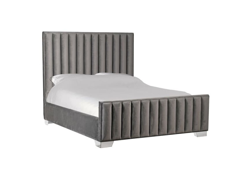 Moderná manželská posteľ Denver so sivým čalúnením a dizajnovým zvislým prešívaním 160cm