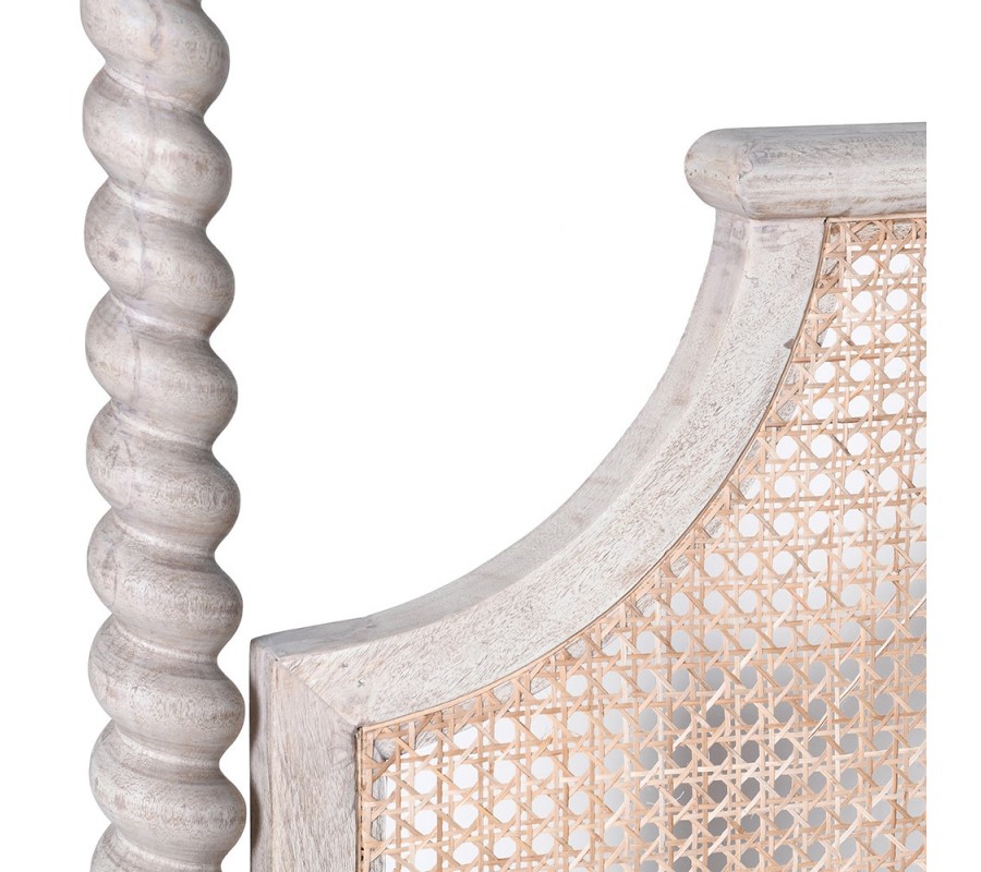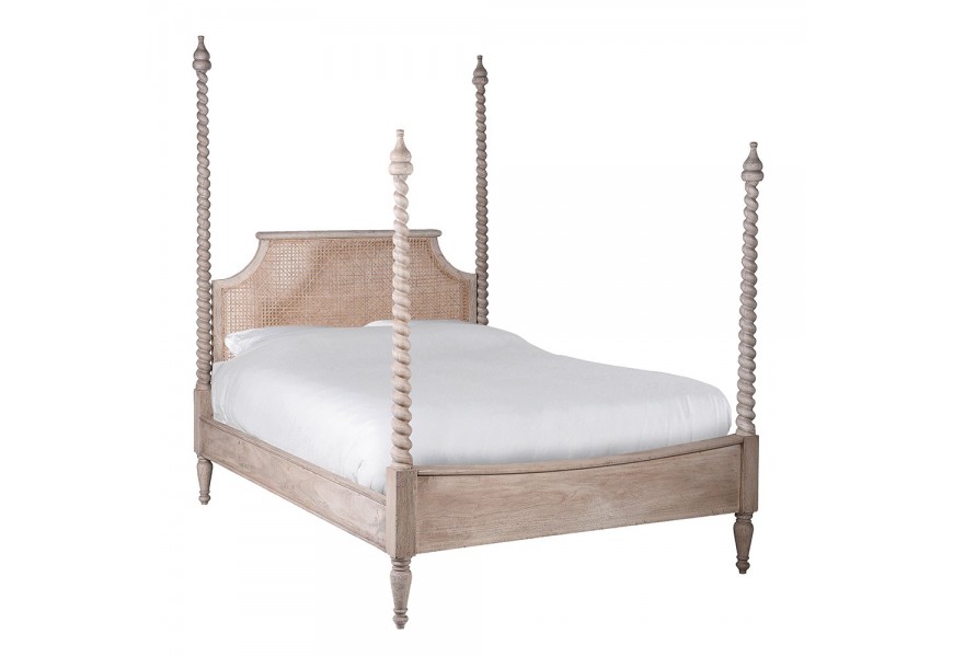 Luxusná manželská posteľ z kolekcie Nature krásne vynikne v rustikálne a vintage ladených spálňach. Telo z masívneho akáciového dreva sa nesie v príjemnej naturálnej svetlohnedej farbe a jeho prirodzená kresba vo vašom interiéri dopomôže vytvoriť útulný nádych domova. Na posteli zaujme predovšetkým nádherné ručné vyrezávanie na štyroch nožičkách a vysokých pilieroch rôznych veľkostí. Vyrezávanie dodáva posteli jemný orientálny nádych a vašu spálňu premení na luxusnú zámockú komnatu. Vyrezávané čelo vypĺňa štýlové ratanový výplet svetlohnedej farby príjemne dopĺňajúci agátový masívny rám. Manželská posteľ Nature dokonale zapadne do luxusných spální vo vintage či rustikálnom štýle. Pre dokonalý efekt odporúčame posteľ doladiť nočným stolíkom z našej rovnomennej kolekcie či luxusnou vyrezávanou lavicou. Vhodné sú tiež dekorácie z prírodných materiálov, honosný baldachýn či koberček s dlhým vlasom.