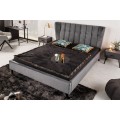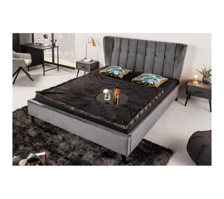 Dizajnová sivá manželská posteľ Alva v retro zamatovom prevedení s čiernymi nožičkami 215cm