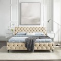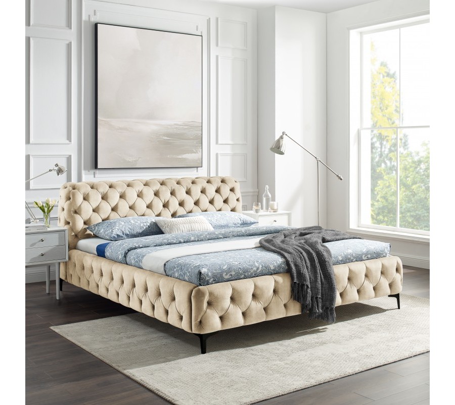Chesterfield čalúnená manželská posteľ Modern Barock s krémovým zamatovým poťahom a kovovými nožičkami 160x200cm