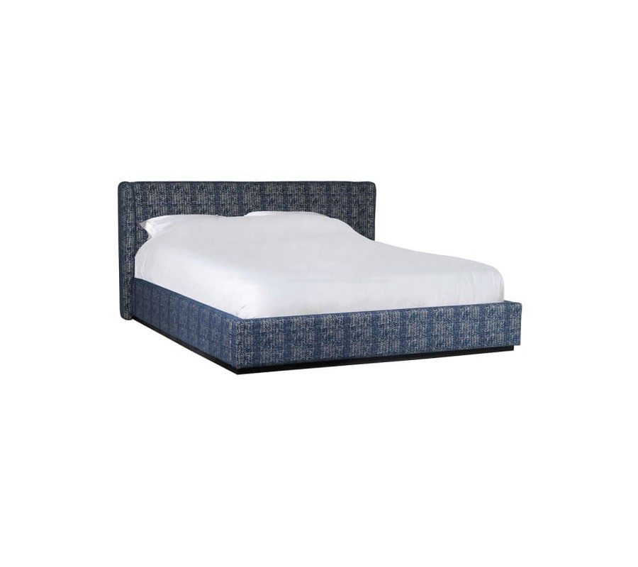 Retro štýlová čalúnená manželská posteľ Ari so vzorovanou pásikavou kombináciou parížskej modrej a bieleho detailu na textílii obzvláštní interiér spálne jemným dizajnovým nádychom. Posteľ dominuje svojou veľkosťou a je ideálna pre manželský pár ale aj pre jednotlivca obľubujúceho nadmerný komfort. Ideálna veľkosť matraca je 180x 200. Vizuál postele je ľahko kombinovateľný s minimalistickými doplnkami či nábytkom. Konštrukcia z masívu a mohutné čalúnené rámy podporujú ešte väčšiu optickú stabilitu. Zlatý vzorovaný detail môže vyniknúť aj vďaka nočným stolíkom v zlatom prevedení umiestnených po bokoch postele s nočnými lampami v čiernej či sivej farbe.