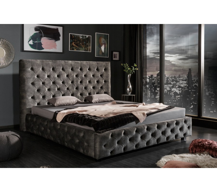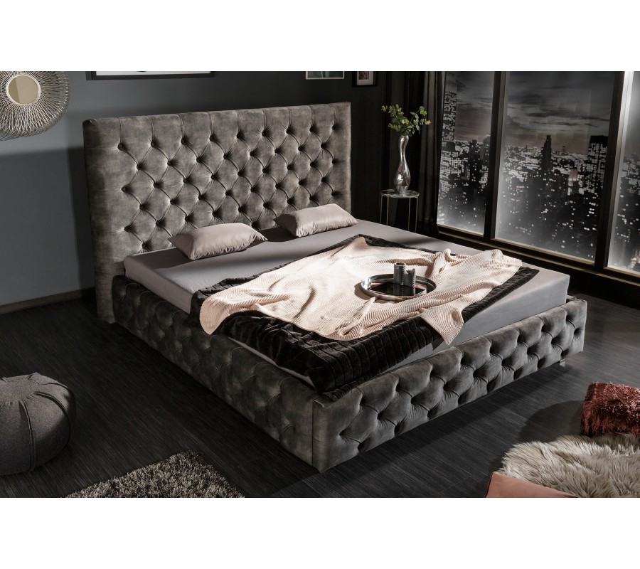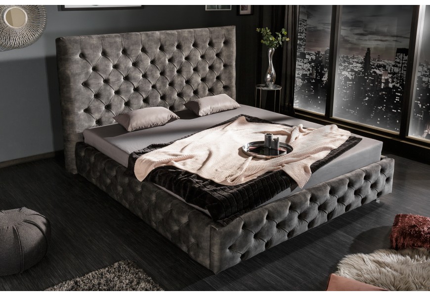 Luxusná čalúnená posteľ Kreon s Chesterfield prešívaním sivá