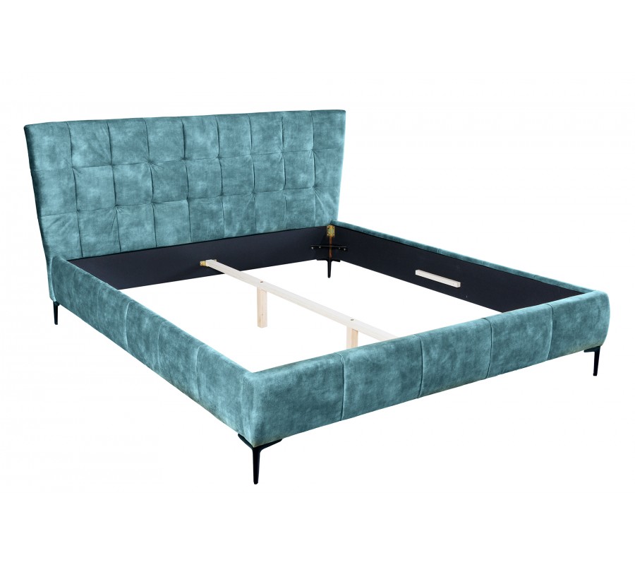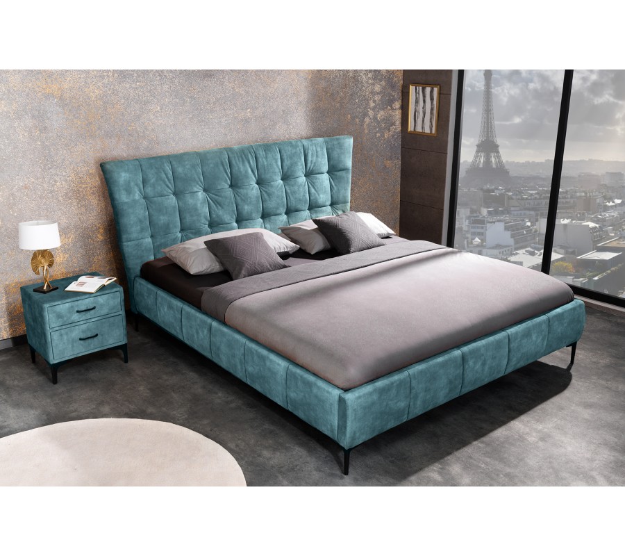Dizajnová manželská posteľ Velouria petrolejovej modrej farby so zamatovým čalúnením 180x200