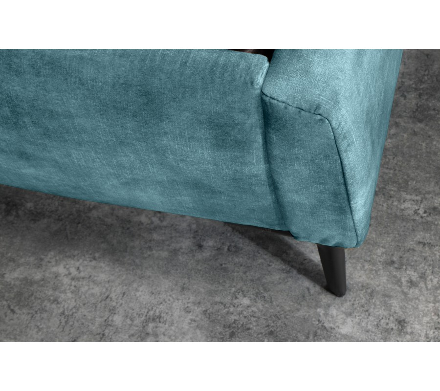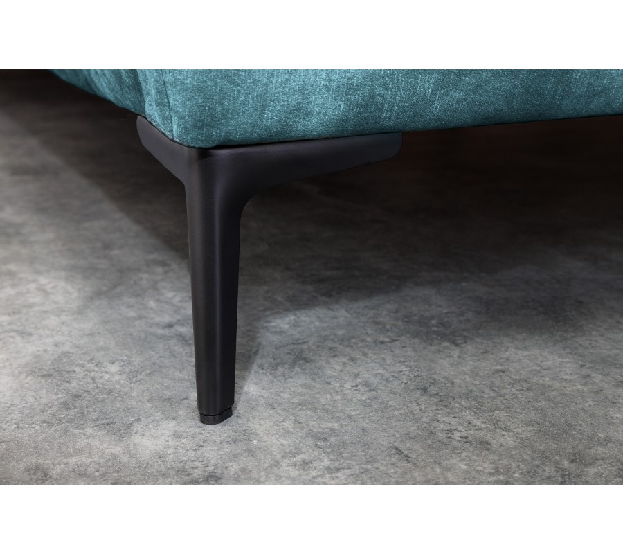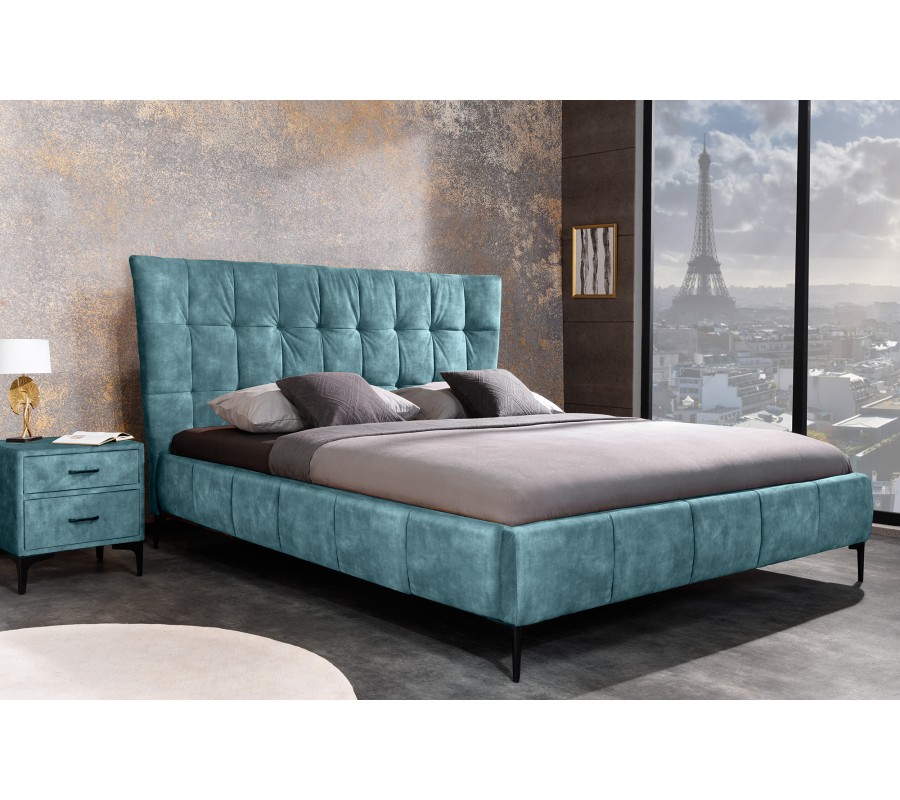 Štýlová manželská posteľ Velouria predstavuje prepojenie komfortného prevedenia a estetického vzhľadu. Už na prvý pohľad zaujme svojím poťahom v pútavej petrolejovej modrej farbe, ktorým rozžiari vaše priestory. Dominantným prvkom okrem výraznej farebnosti je aj vysoké, jemne zošikmené čelo s elegantným prešívaním, ktoré sa okrem dizajnového vzhľadu postará aj o váš nadštandardný komfort. Celkový moderný dizajn dopĺňajú jednoduché kovové nožičky v čiernej farby, ktoré zabezpečujú výbornú stabilitu. Posteľ Velouria s rozmermi 160x200 je ideálna na doplnenie spální pre páry, ale i jednotlivcov, ktorí si radi doprajú komfort. Odporúčame ju doplniť aj nočnými stolíkmi z našej rovnomennej kolekcie, čím si zjednotíte vaše priestory a dosiahnete vysoko elegantný štýlový efekt.