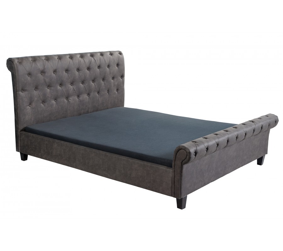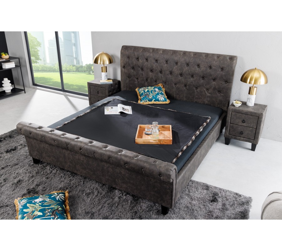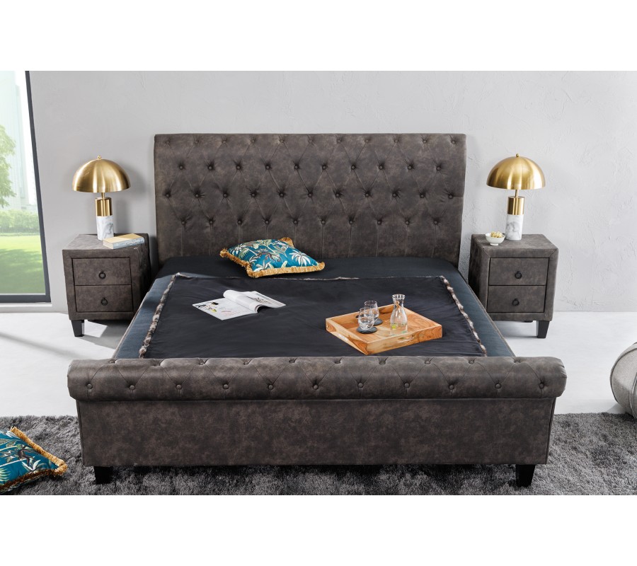 Chesterfield manželská posteľ Gambino s tmavosivým čalúnením z mikrovlákna 180x200cm