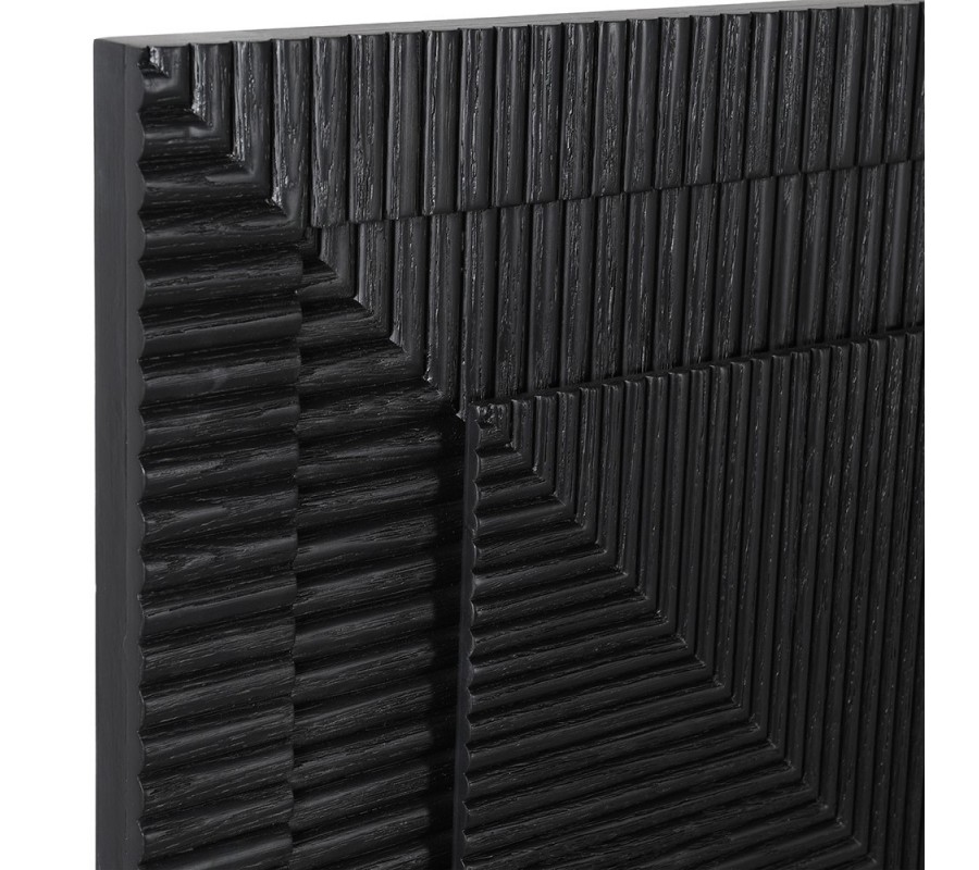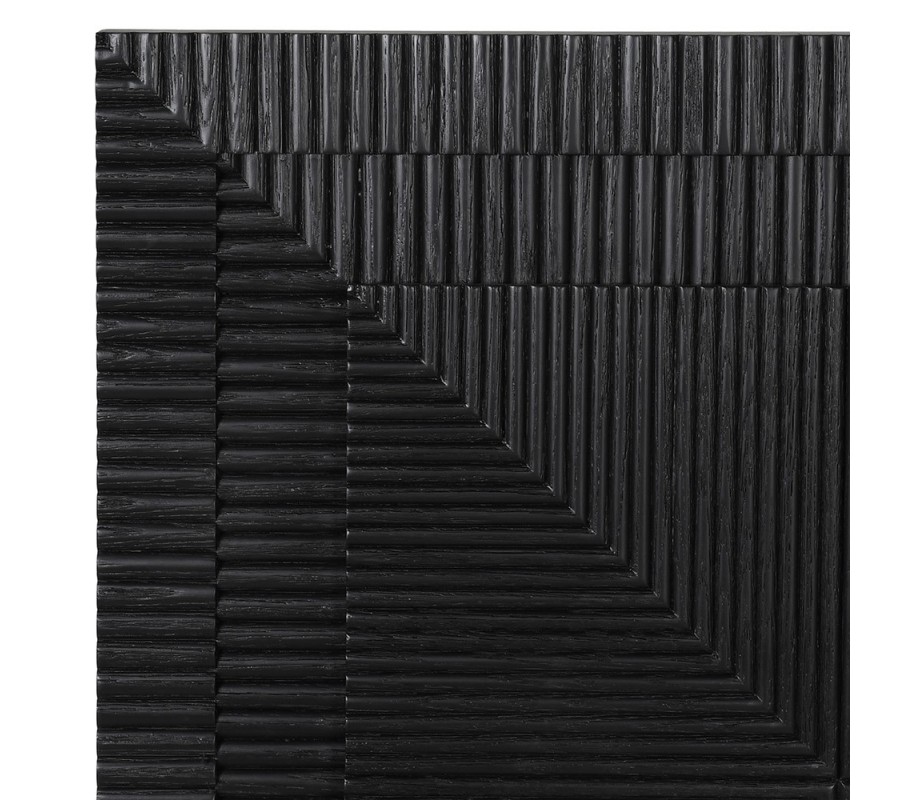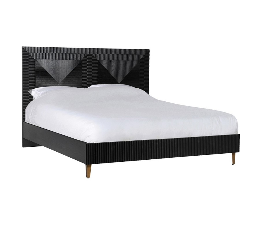 Luxusná art deco čierna manželská posteľ Costilla z dubového dreva s drážkovaným geometrický dizajnom 190 cm