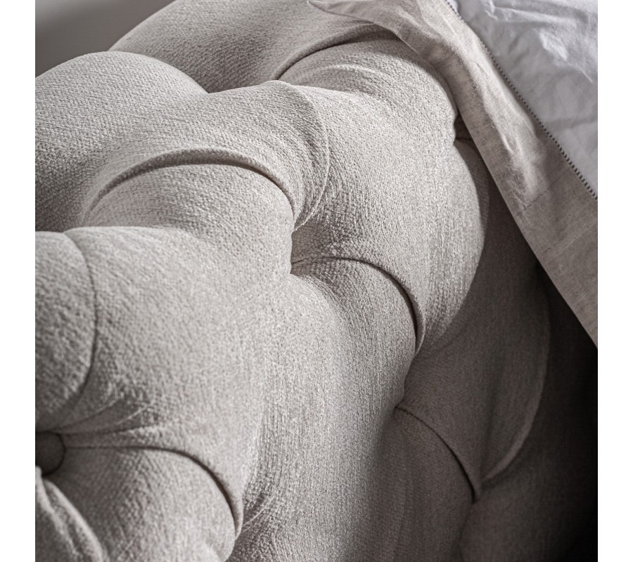 Manželská posteľ Perivolos spája moderný štýl s klasickou eleganciou chesterfield nábytku. Prevedenie vo svetlej béžovej farbe pôsobí luxusným dojmom, zatiaľ čo bohaté čalúnenie vytvára honosný a luxusný vizuál.