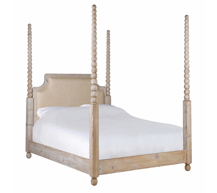 Posteľ má obdĺžnikovú základňu a dizajnu dominujú štyri vysoké stĺpiky, umiestnené na rohoch. V spodnej časti majú hranatý tvar, doplnený okrúhlou nožičkou a vo vrchnej časti ich zdobí honosné vyrezávanie v podobe na sebe uložených guličiek. Dizajn pôsobí elegantne a bohatá silueta zároveň vytvára luxusný vizuál.