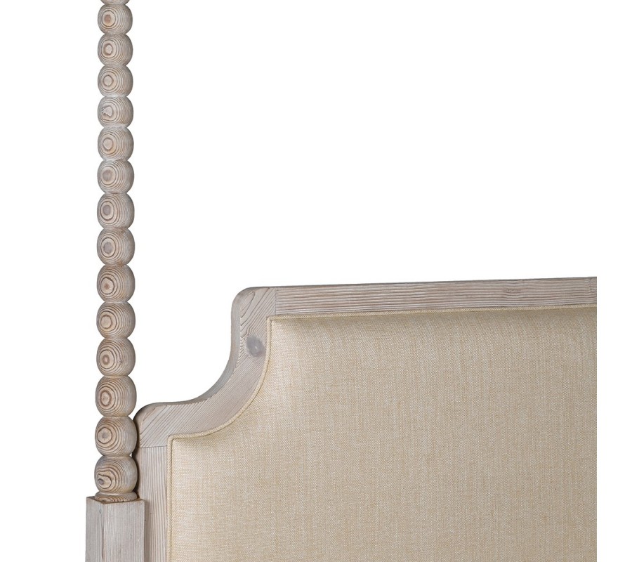 Luxusná vintage béžová manželská posteľ Boia z masívneho dreva s čalúneným čelom a vyrezávanými stĺpikmi 162 cm