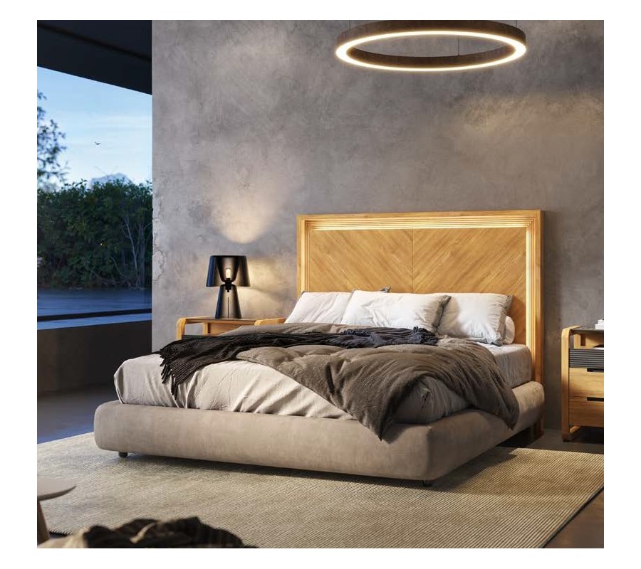 Luxusná moderná manželská posteľ Berna s dreveným čelom a čalúneným rámom 199 cm