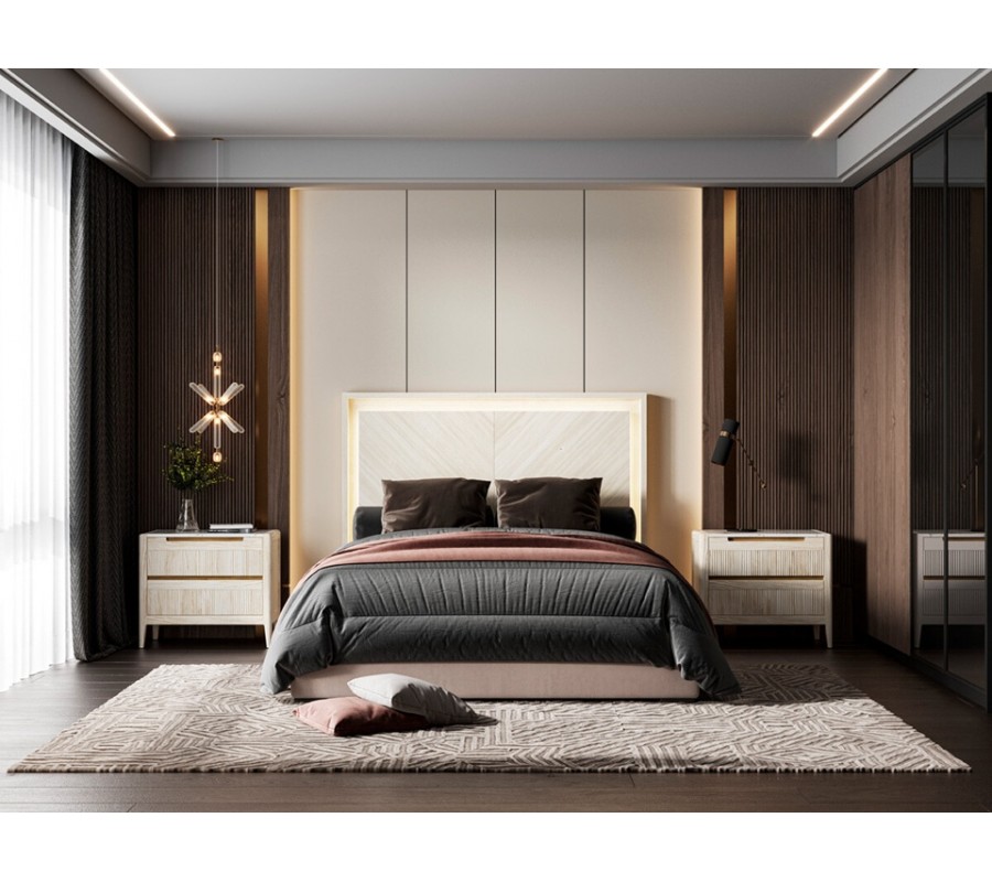 Posteľ Berna sa hodí do moderných aj luxusne ladených spální, kde vynikne v kombinácii s nočnými stolíkmi, komodami a osvetlením z rovnakého dizajnového radu, ako aj s jemnými textíliami a minimalistickými doplnkami podľa vášho individuálneho štýlu.