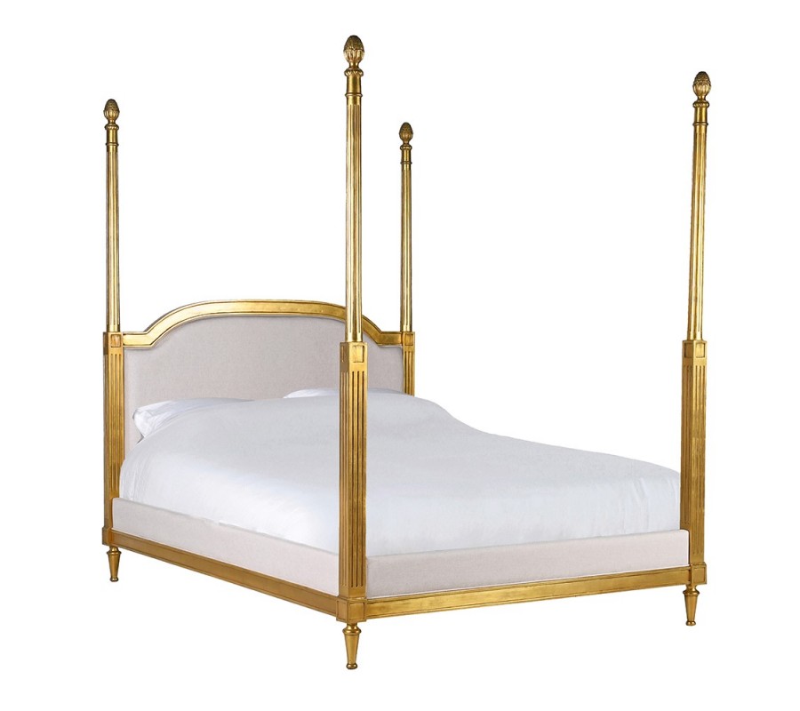 Luxusná glamour manželská posteľ Dimitria pôsobí noblesne, klasicky a mimoriadne dekoratívne. Je výrazným dizajnovým kusom, ktorý v interiéri vytvára atmosféru elegancie, pohodlia a nadčasového luxusu. Konštrukcia postele je vyhotovená z masívneho mahagónového dreva v zlatej povrchovej úprave, ktorá podčiarkuje jej reprezentatívny charakter a remeselnú precíznosť spracovania.