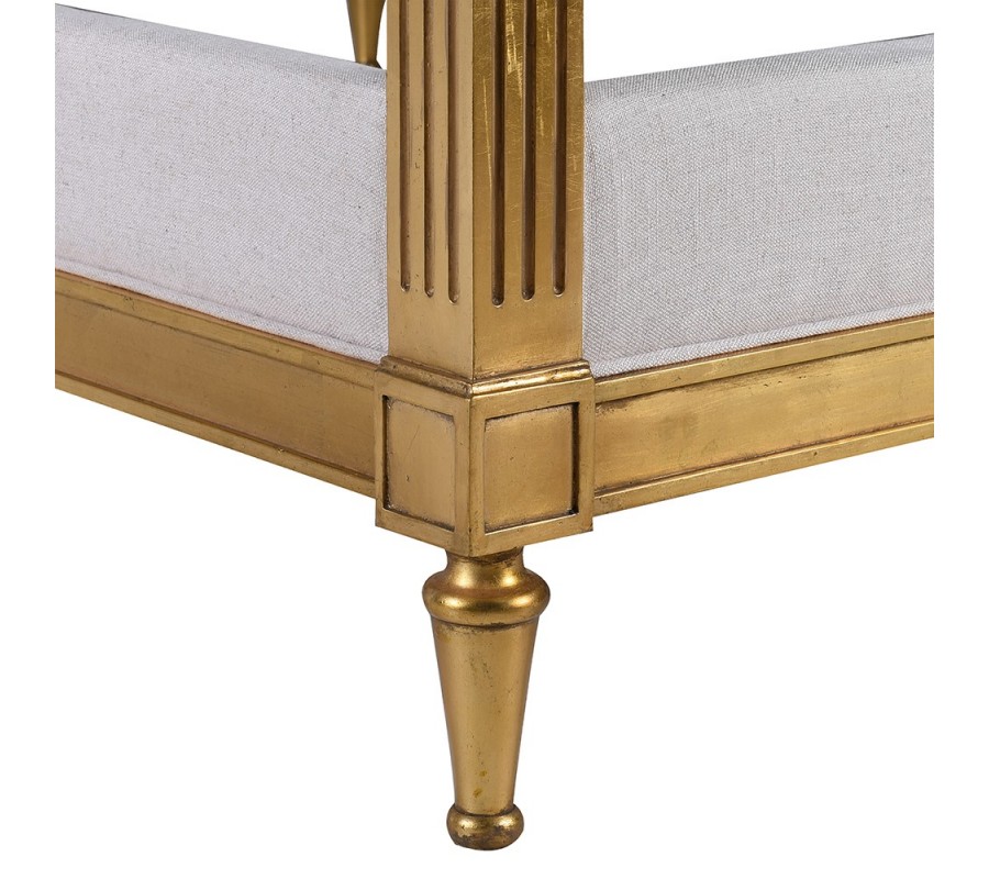 Luxusná glamour manželská posteľ Dimitria s masívnou mahagónovou zlatou konštrukciou a béžovým ľanovým čelom 220 cm