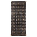 Luxusná vintage priehradková úschovňa Andres z kovu v čiernej farbe s dvadsiatimi štyrmi dvierkami s menovkou 180 cm