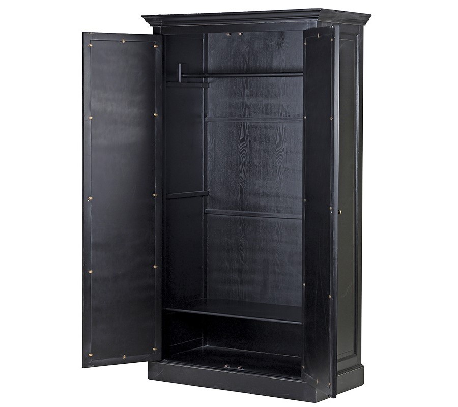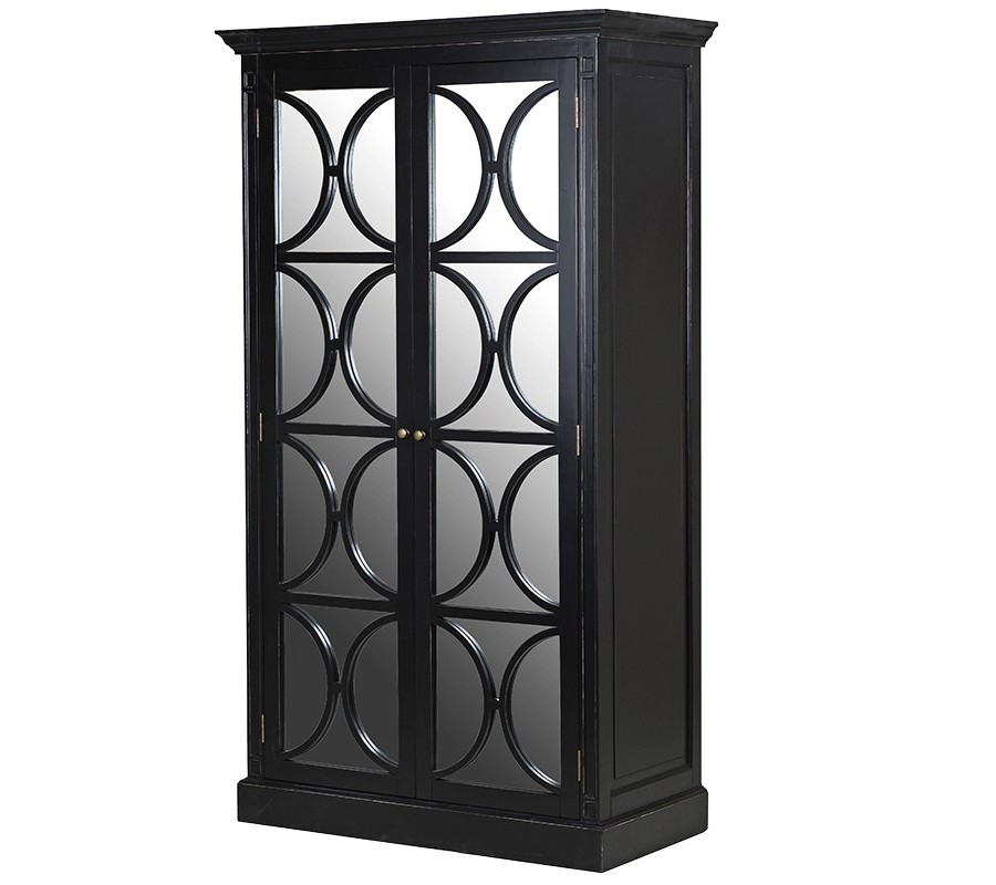 Art-deco luxusná skriňa Delrico v čiernom prevedení je vyrobená z prírodného dreveného masívu. Skladá sa z dvoch dvierok, ktoré majú zrkadlo a kruhový ornament. Vnútro skrine tvorí držiak vhodný na zavesenie vešiakov a polica, ktorá poslúži ako odkladací priestor. Farebne sa dá kombinovať v bielej alebo čiernej farbe. Skriňa sa celkovo hodí do art-deco, moderných interiérov. Vyniká svojím impozantným tvarom.