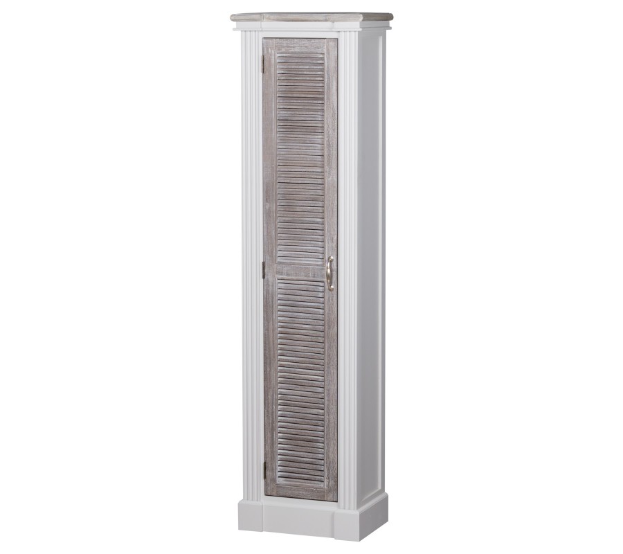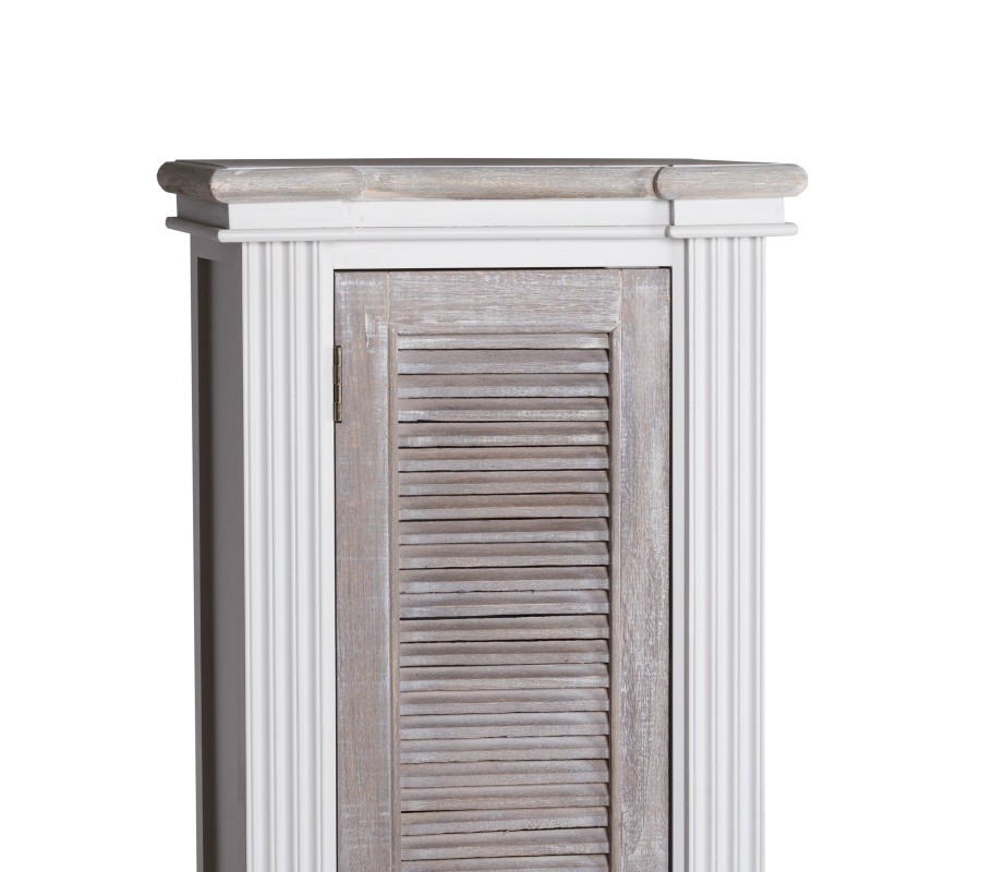 Dizajnová skriňa z luxusnej kolekcie Liberty je krásnym doplnkom do vidiecky alebo provensálsky zariadených priestorov. Bielo šedé telo doplnené o prírodne opracované dvierka s vrchnou doskou dodáva skrinke autentickú atmosféru francúzského vidieku zmiešaného s luxusným mestským štýlom.