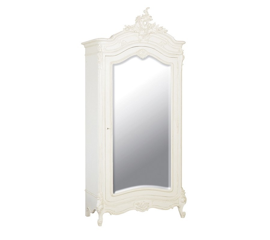 Luxusná jednodverová zrkadlová provensálska skriňa Antic Blanc s ornamentálnym vyrezávaním biela 236 cm