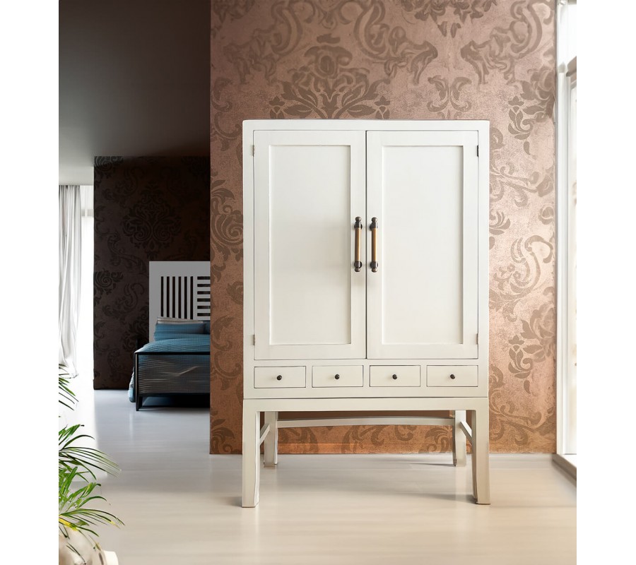 Masívna vintage skriňa Blanc z dreva mindi v bielej farbe 180cm