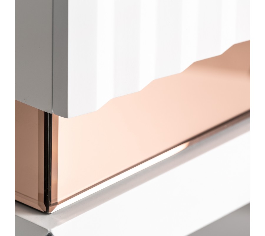 Luxusná šatníková skriňa z kolekcie Cluny Vás poteší najmä množstvom úložného priestoru, ktorý sa skrýva za vkusnými, zrkadlovými dverami v podobe dvoch políc. Zrkadlové dvierka naberajú na jedinečnosti najmä vďaka 3D vzoru do ktorého sú jednotlivé plochy usporiadané, čo v kombinácii so zlatými oceľovými prvkami s nádychom medenej dokáže pôsobiť naozaj veľmi vkusne. Skriňa je síce príkladným predstaviteľom štýlu art-deco, no dokáže perfektne zapadnúť do akéhokoľvek dizajnového domova.