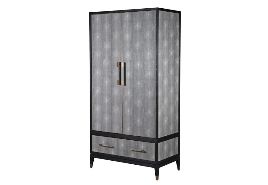 Art-deco šatníková skriňa OTAWA si sivým koženým čalúnením na nožičkách 216cm