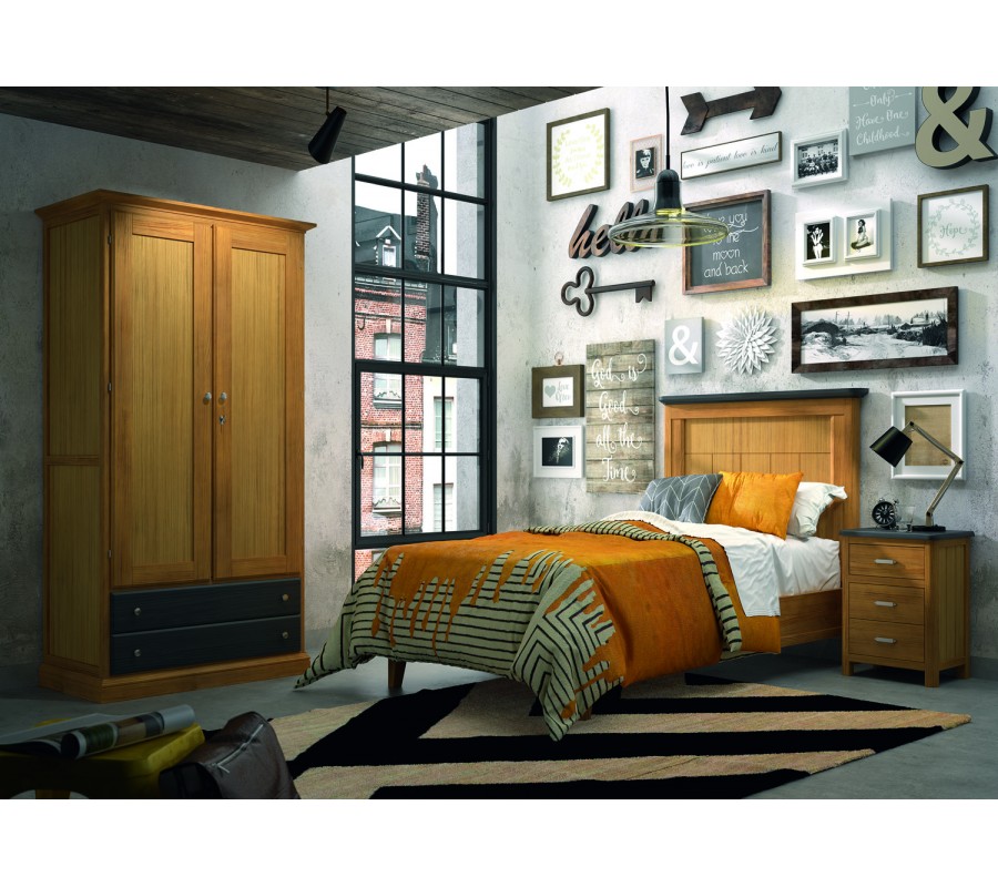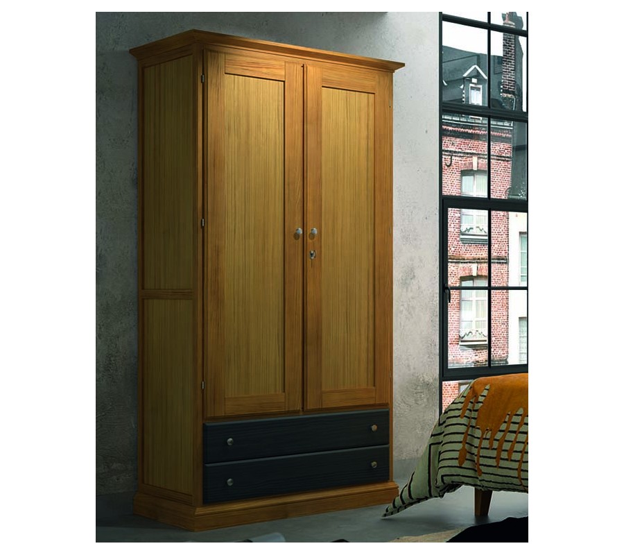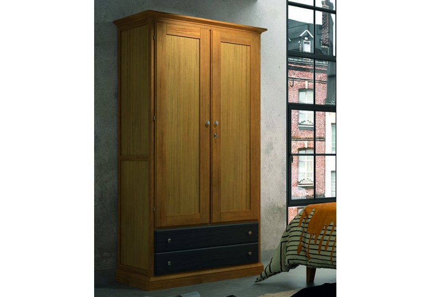 Dizajnová šatníková skriňa Cerdena z masívu s dvomi dvierkami a dvomi zásuvkami 212 cm