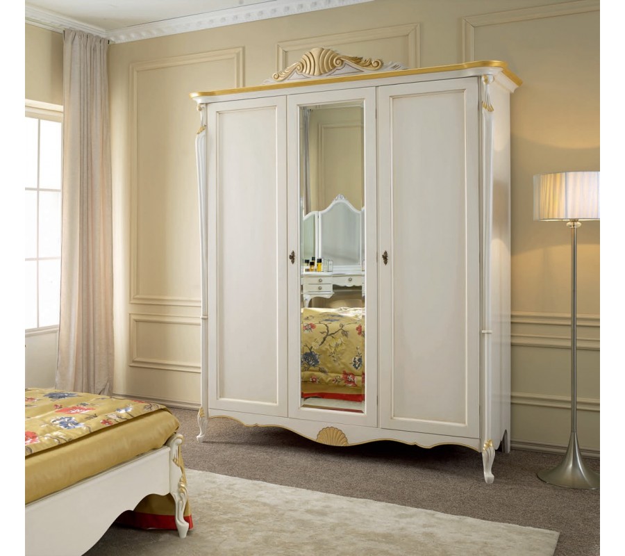 Klasická luxusná šatníková skriňa Pasiones so zrkadlom s vyrezávanými nožičkami 231cm