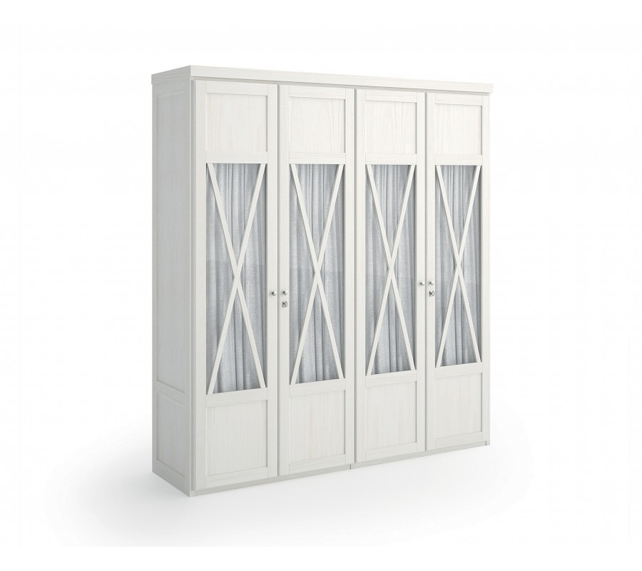 Klasická a dizajnová vysoká šatníková skriňa Lyon z masívneho borovicového dreva so štyrmi preslkenými zdobenými dvierkami 241cm
