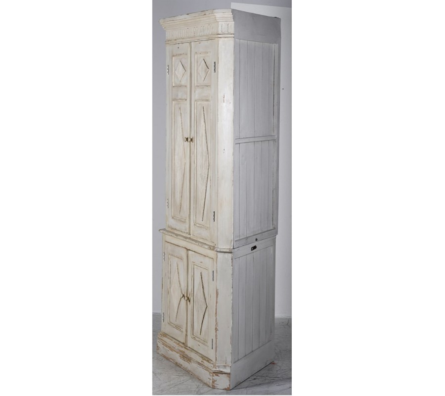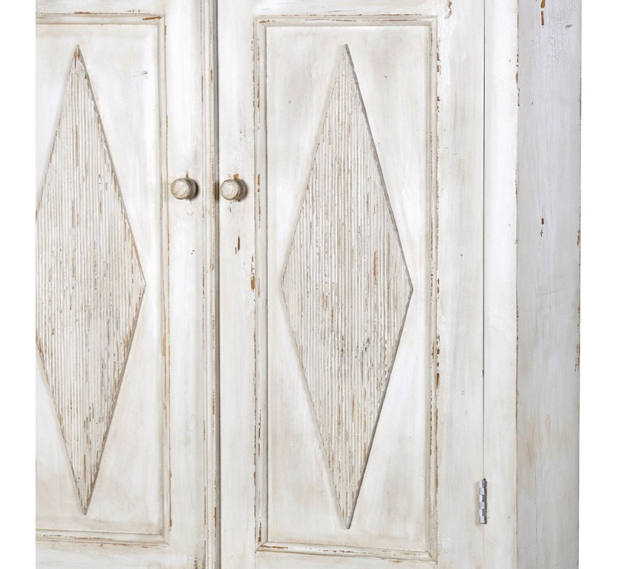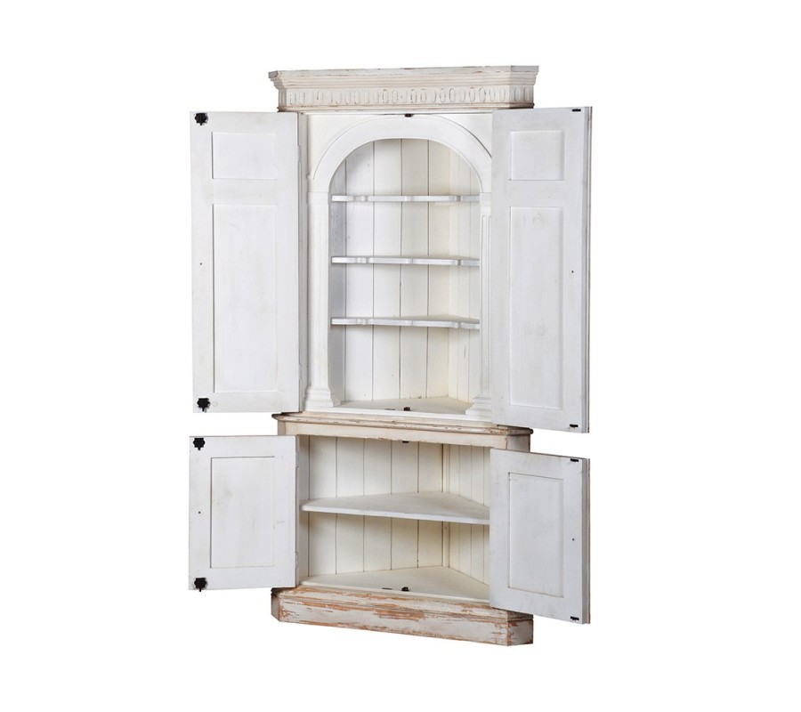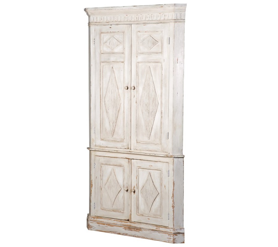 Provensálska rohová skriňa Celene Rode v off white vyhotovení so shabby chic efektom a patinou s dvojkrídlovými dvierkami 220cm