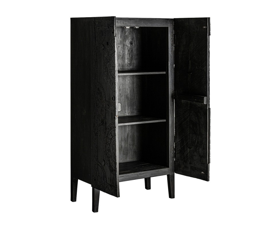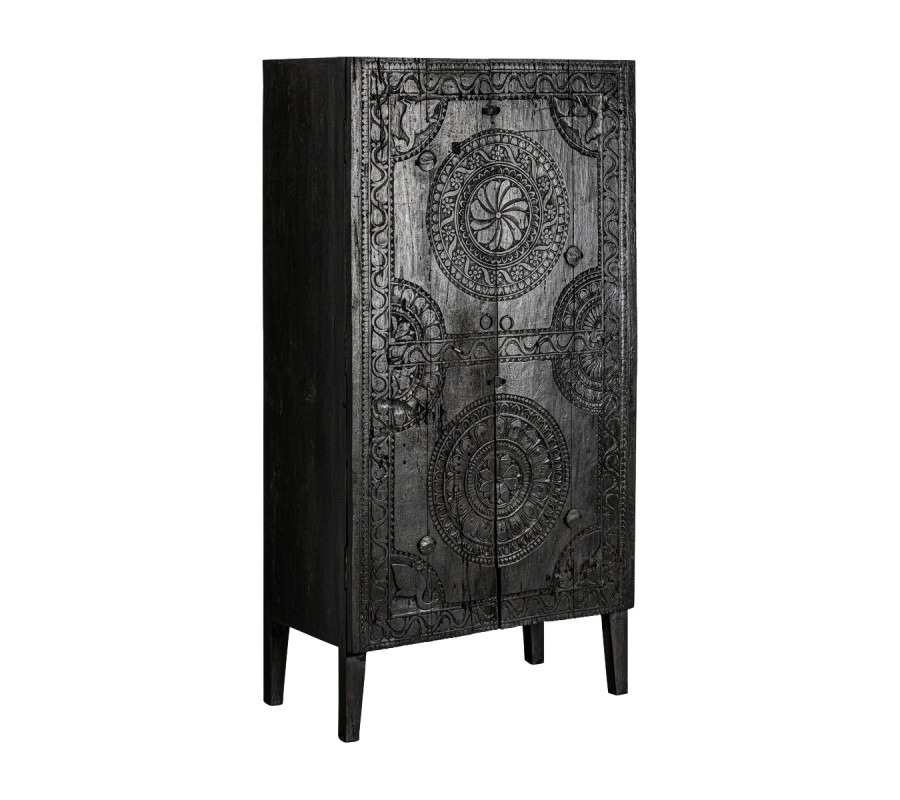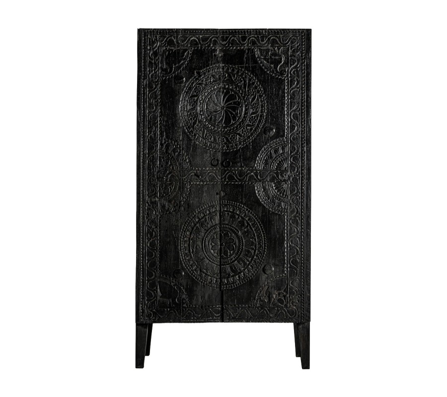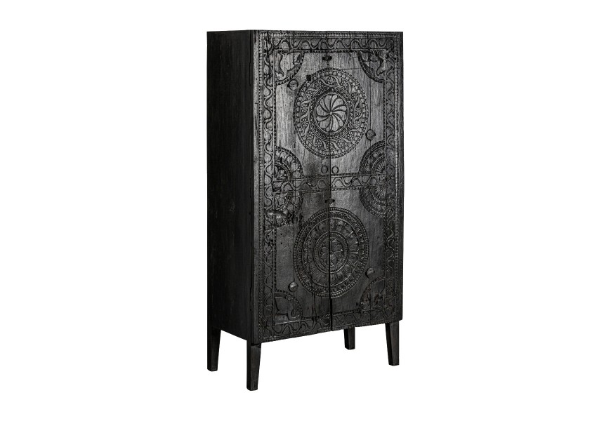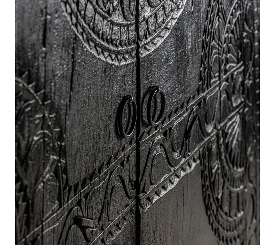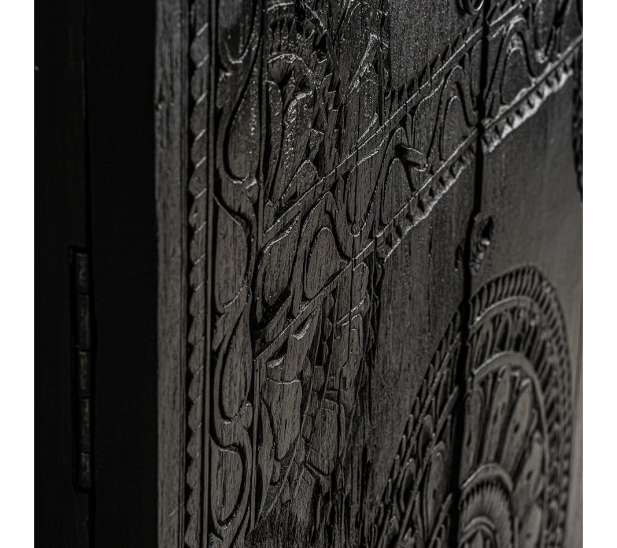 Luxusná orientálna čierna skriňa Belem z masívneho mangového dreva s ornamentálnym vyrezávaním 168cm