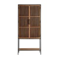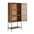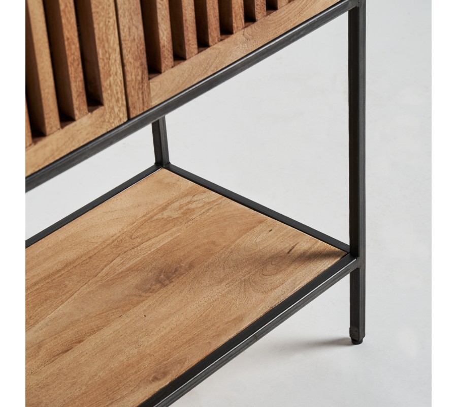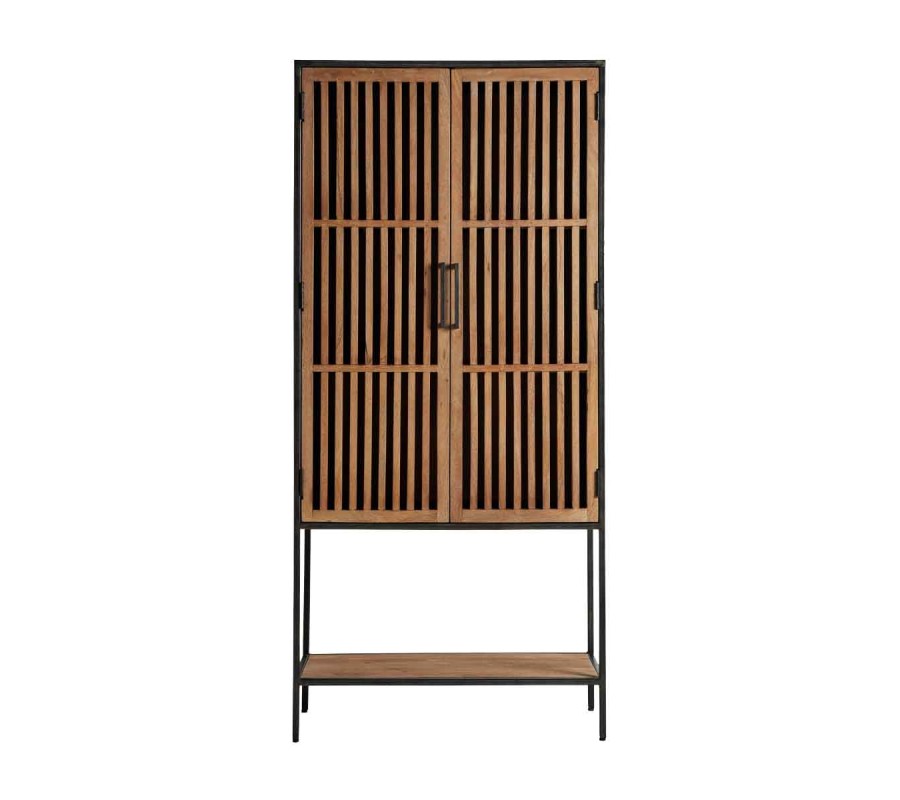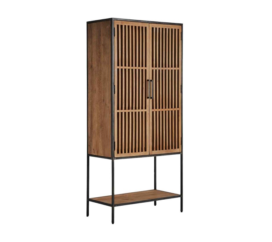 Industriálna moderná skriňa Dureti hnedej farby z mangového masívu a čiernym kovovým rámom 195cm