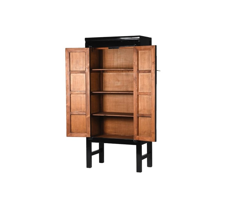 Luxusná vintage skriňa Kolorida z masívneho dreva v čiernom prevedení s poličkami a dvierkami 200cm