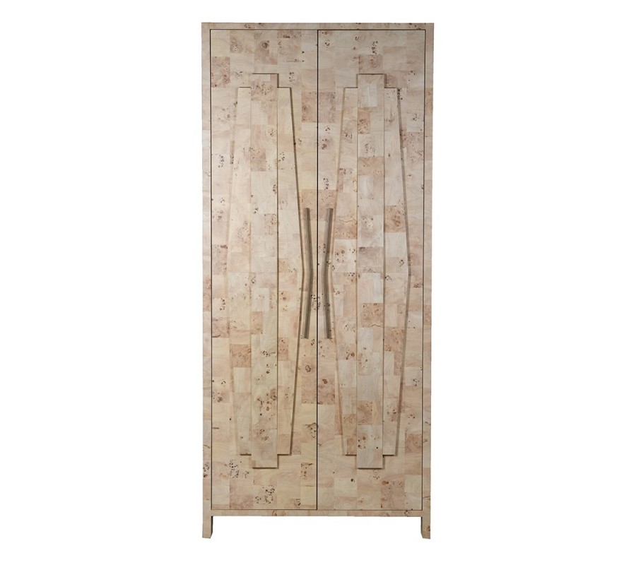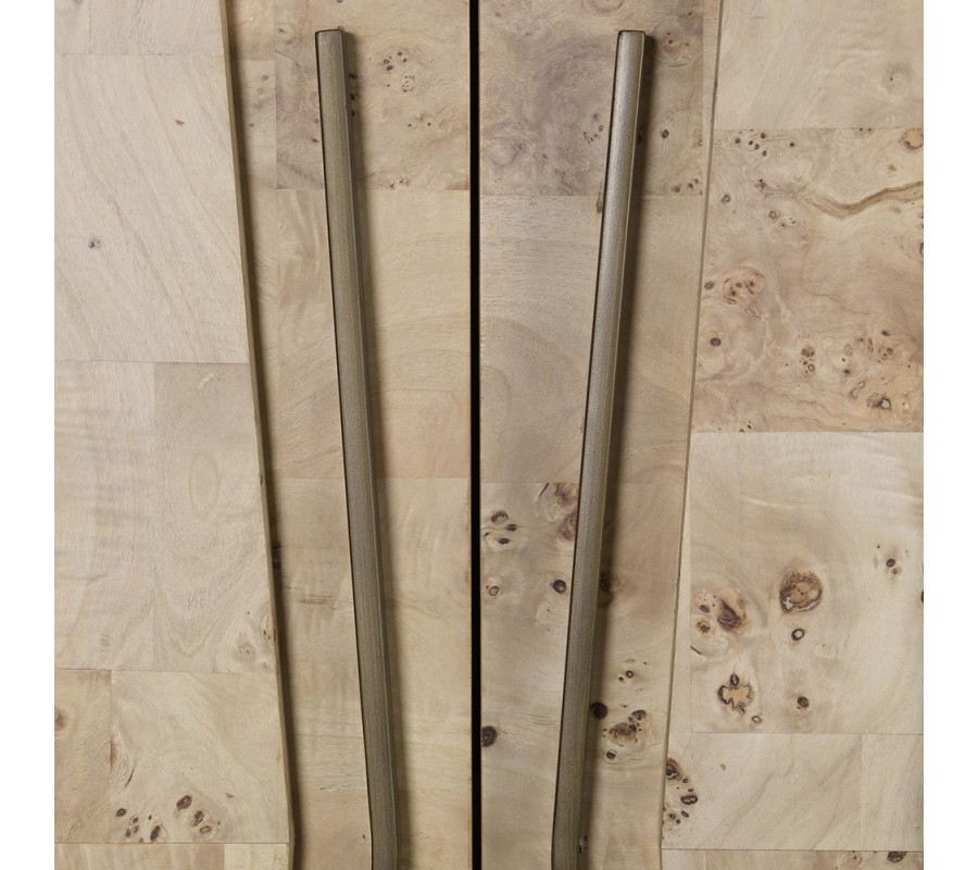 Luxusná dvojdverová vidiecka skriňa Ygritte s ozdobným reliéfom a dyhovaním zo svetlého burl dreva 204 cm