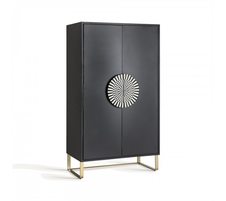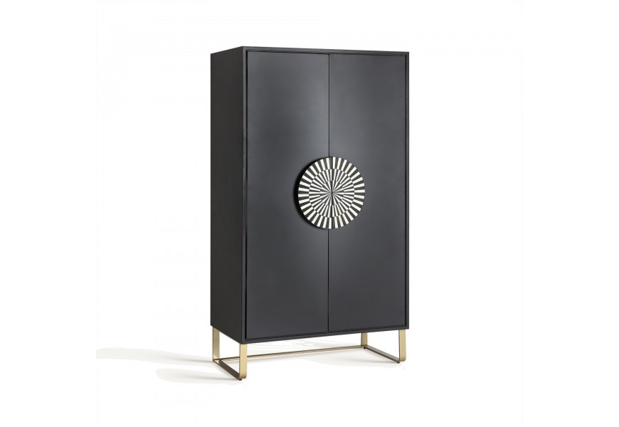Luxusná art deco skriňa Tesoreria s dizajnovou úchytkou zdobenou kosťovou inkrustáciou čierna 181 cm