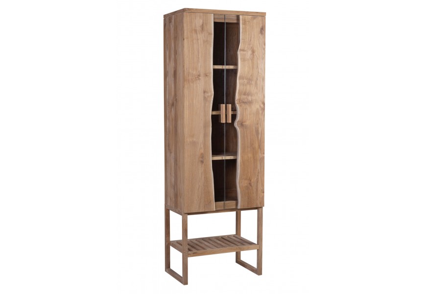 Moderná masívna skrinka Abertura v prírodnej svetlej hnedej farbe dreva s dizajnovým skleným detailom dvierok 185 cm