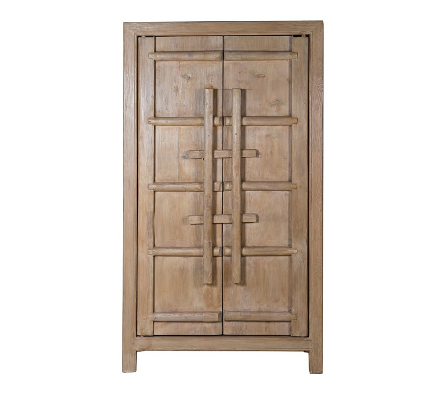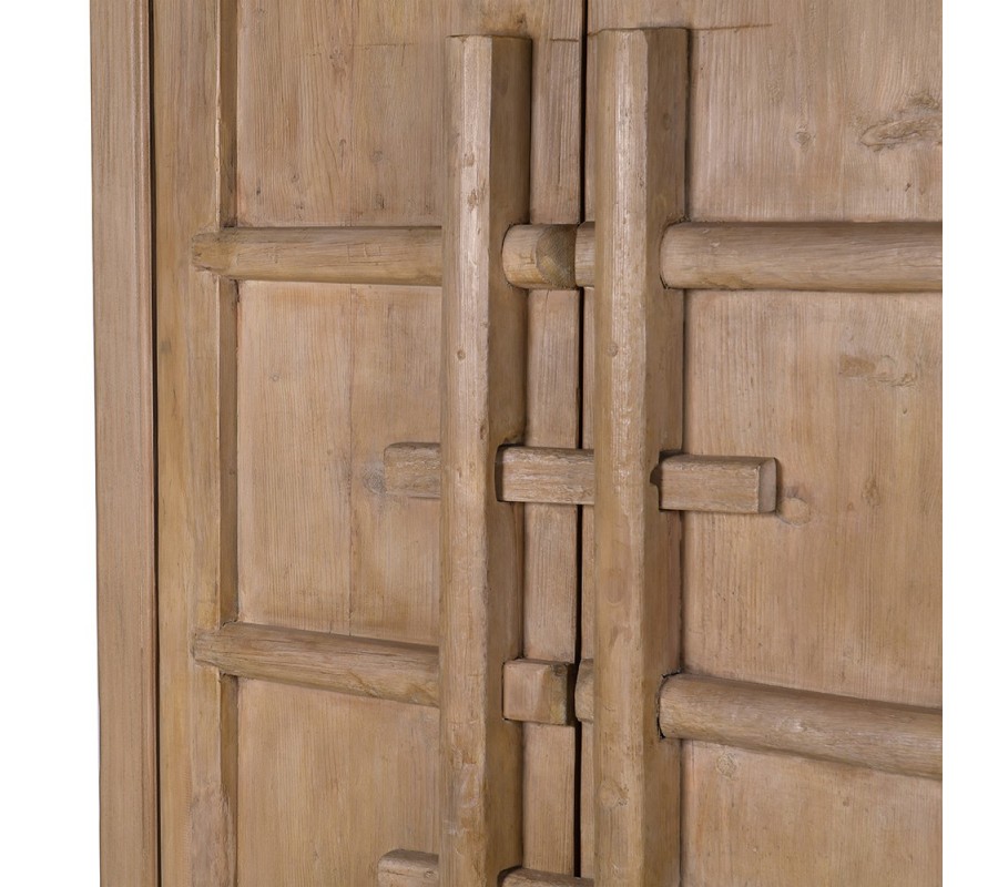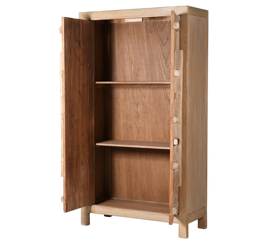 Skriňa je vyrobená z recyklovaného masívneho dreva, ktoré jej prepožičiava autentický vintage vzhľad. Povrch je hladko obrúsený a zdobia ho naturálne štruktúry ako letokruhy, uzly či prasklinky. Okrem pridanej estetickej hodnoty zaručujú tiež unikátny vizuál každého kusa. Prírodná svetlá hnedá farba pôsobí príjemným organickým dojmom a kvalitné spracovanie zaručuje výbornú trvanlivosť nábytku. Materiál je zároveň ekologický a udržateľný.