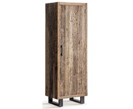 Luxusná koloniálna masívna hnedá obdĺžniková jednodverová šatníková skriňa Rebe s kovovými čiernymi hranatými nohami 202 cm